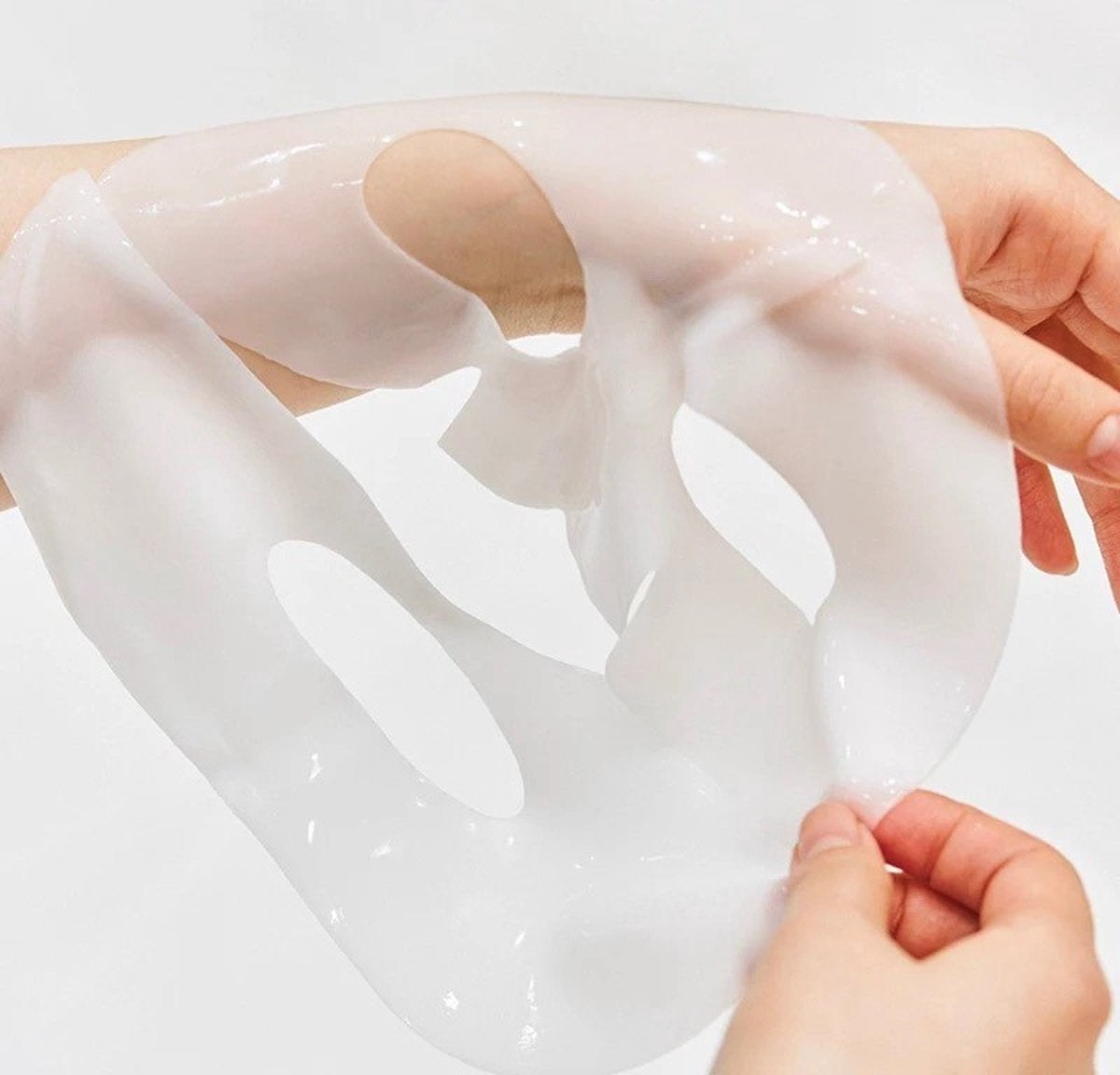 Het Koreaanse masker is doordrenkt met een laag moleculair collageen en hydraterende actieve ingrediënten